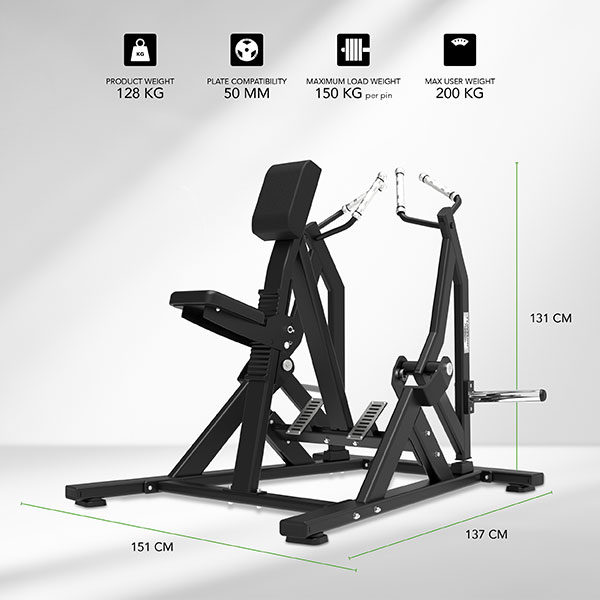 Tunturi Platinum Seated Row je naprava za veslanje, namenjena učinkovitemu treningu hrbta. Plate loaded zasnova omogoča stabilno in nadzorovano gibanje ter progresivno obremenitev.