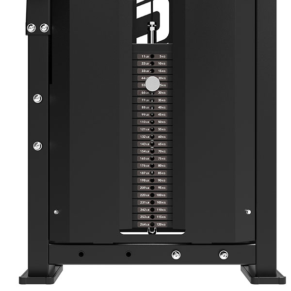 Z 120 kg utežnim stolpom, robustnim jeklenim okvirjem debeline 2,5 mm in gladkim prenosom upora je ta naprava nepogrešljiva v vsakem profesionalnem vadbenem okolju.