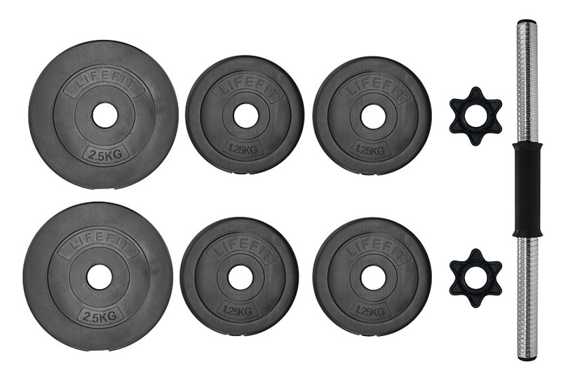 Komplet za nalaganje utež LIFEFIT PREMIUM 15 kg je ugoden komplet za nalaganje dumbbelov s cementnim polnilom.